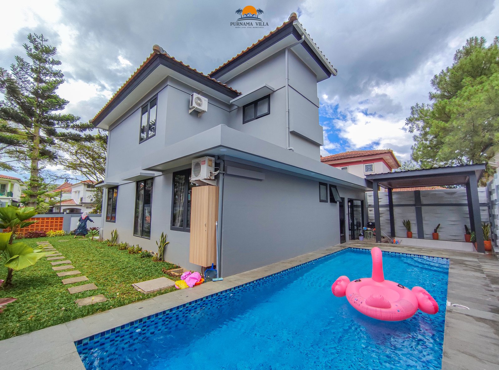 Kolam renang, BBQ area, dan taman luas menanti Anda.